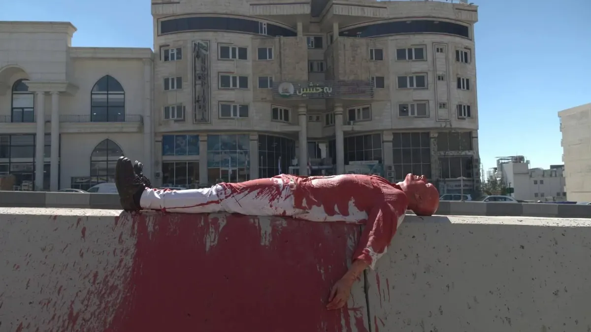 وأضاف الفنان التشكيلي: "قمتُ بطلاء وجهي وملابسي باللون الأحمر، ثم تمددتُ على جداٍر أمام المستشفى، مُنفذاً بذلك احتجاجي".