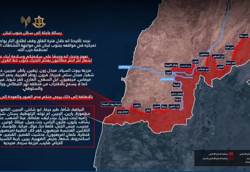 الجيش الإسرائيلي يجدد إنذاره إلى سكان جنوب لبنان