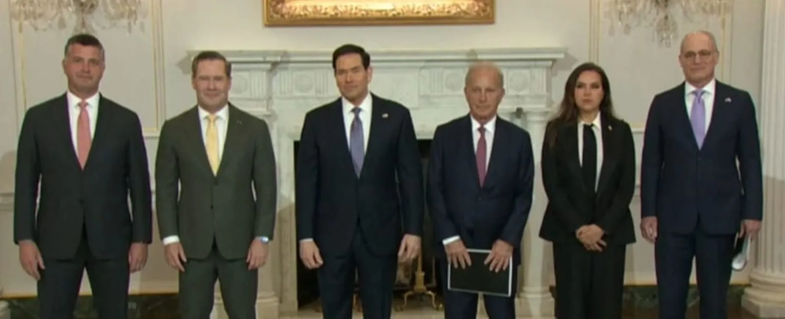 التقى وزير الخارجية الأميركي ماركو روبيو، اليوم الثلاثاء 14 نيسان، بسفيري إسرائيل ولبنان، وذلك في أول محادثات سلام مباشرة منذ عقود، حيث استقبلهما في مقر وزارة الخارجية الأمريكية.