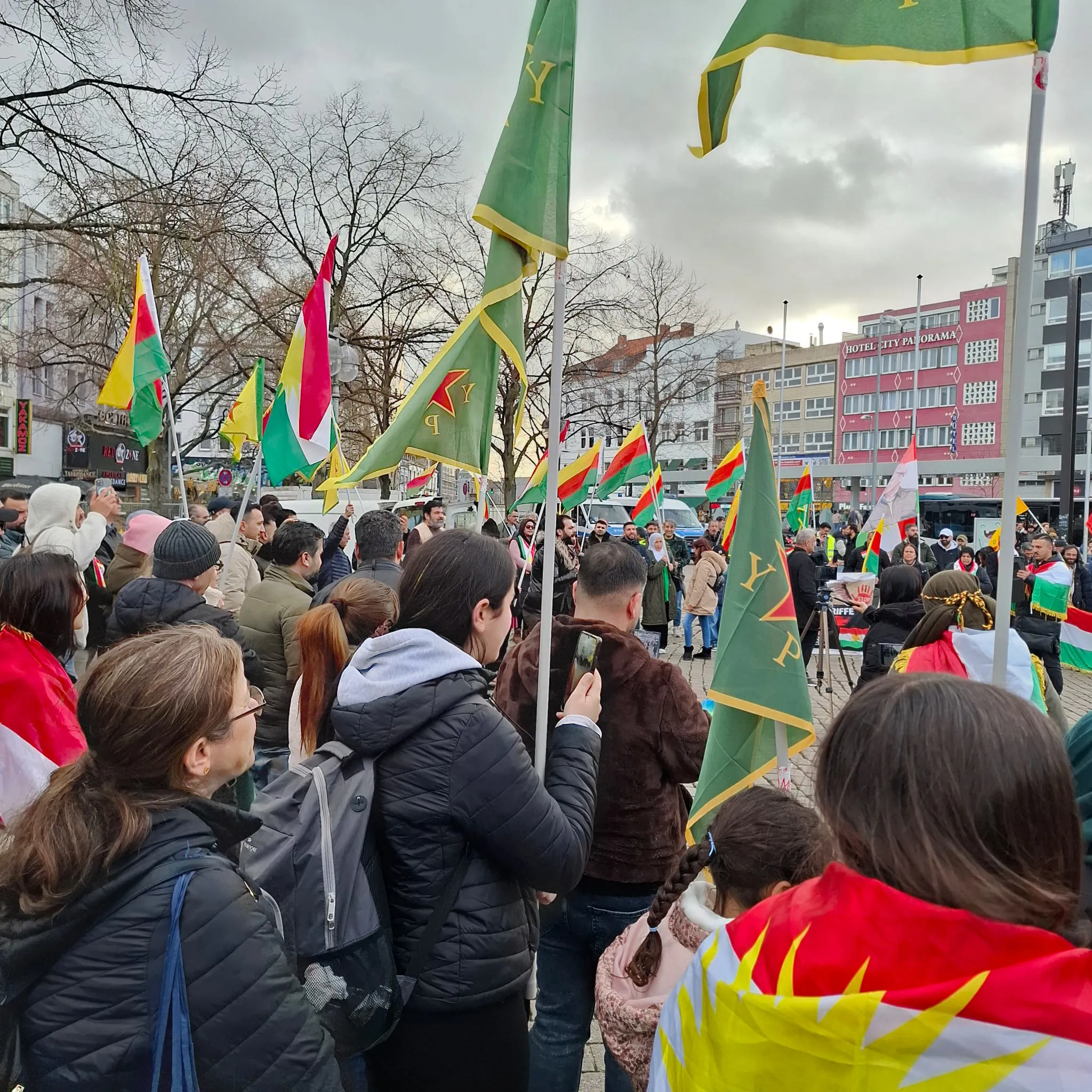 وتم تنظيم الوقفة الاحتجاجية لتمثل موقف الكرد الواحد الرافض للهجمات التي تستهدف إقليم كردستان مع بدء الحرب الإسرائيلية الامريكية ـ الإيرانية، حيث قام المشاركون برفع أعلام كردستان ولافتات باللغات الكردية والعربية والألمانية، تندّد بالتصعيد العسكري وتطالب بوقفه فوراً.