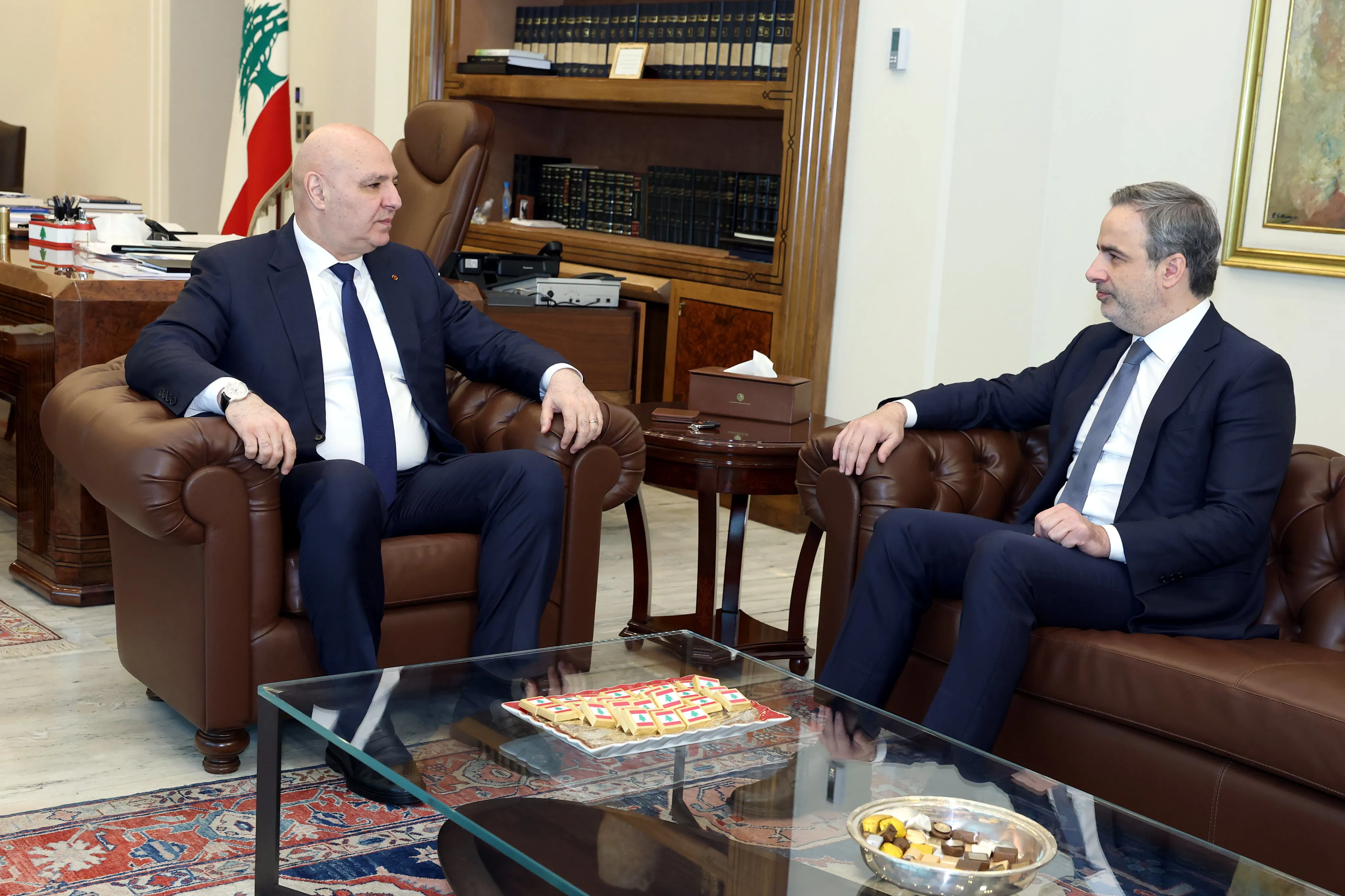 RûpelNews - قال معوض: " أنا هنا اليوم لأقول لفخامة الرئيس، باسمي وباسم اللبنانيين الذين لي شرف تمثيلهم، إننا إلى جانبه، وإلى جانب الدولة اللبنانية في مشروعها لاستعادة سيادتها واحتكار السلاح وقرار السلم والحرب، حمايةً لخمسة ملايين لبنانية ولبناني من تنظيم حزب الله المسلّح.".
