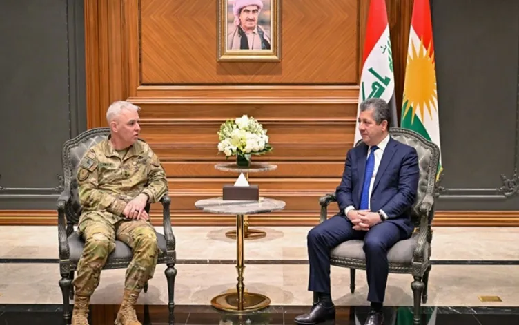 استقبل رئيس حكومة إقليم كردستان، مسرور بارزاني، اليوم الخميس 9 نيسان 2026، القائد العام لقوات التحالف الدولي في العراق وسوريا، الجنرال كيفن لامبرت، في لقاء تناول أبرز المستجدات الأمنية والسياسية في المنطقة.