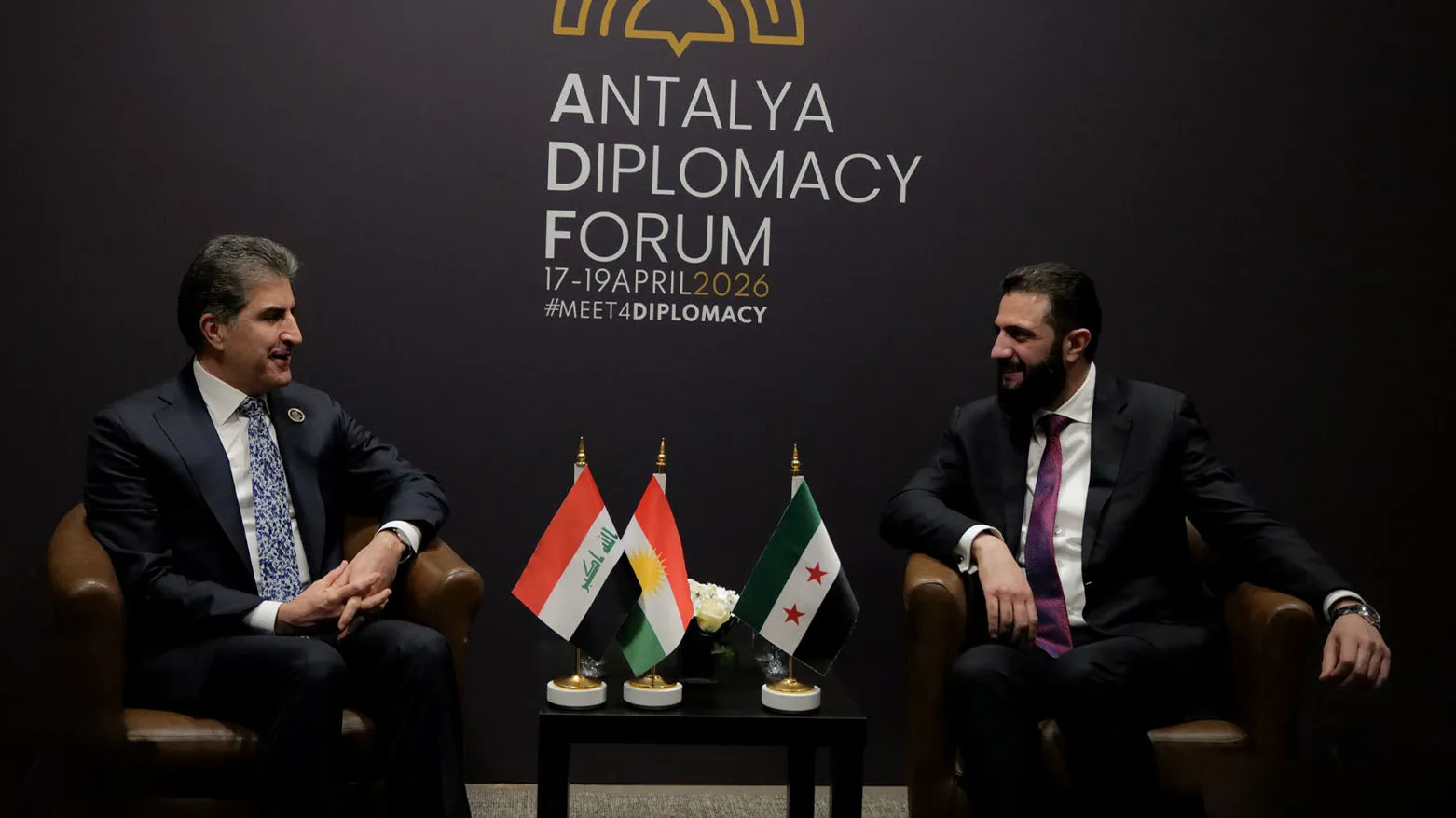 بحث رئيس إقليم كردستان، نيجيرفان بارزاني، اليوم الجمعة 17 نيسان، مع الرئيس أحمد الشرع، سبل تعزيز الروابط المشتركة بين العراق وإقليم كردستان وسوريا، وذلك خلال لقاء بينهما على هامش مشاركتهما في منتدى أنطاليا الدبلوماسي.