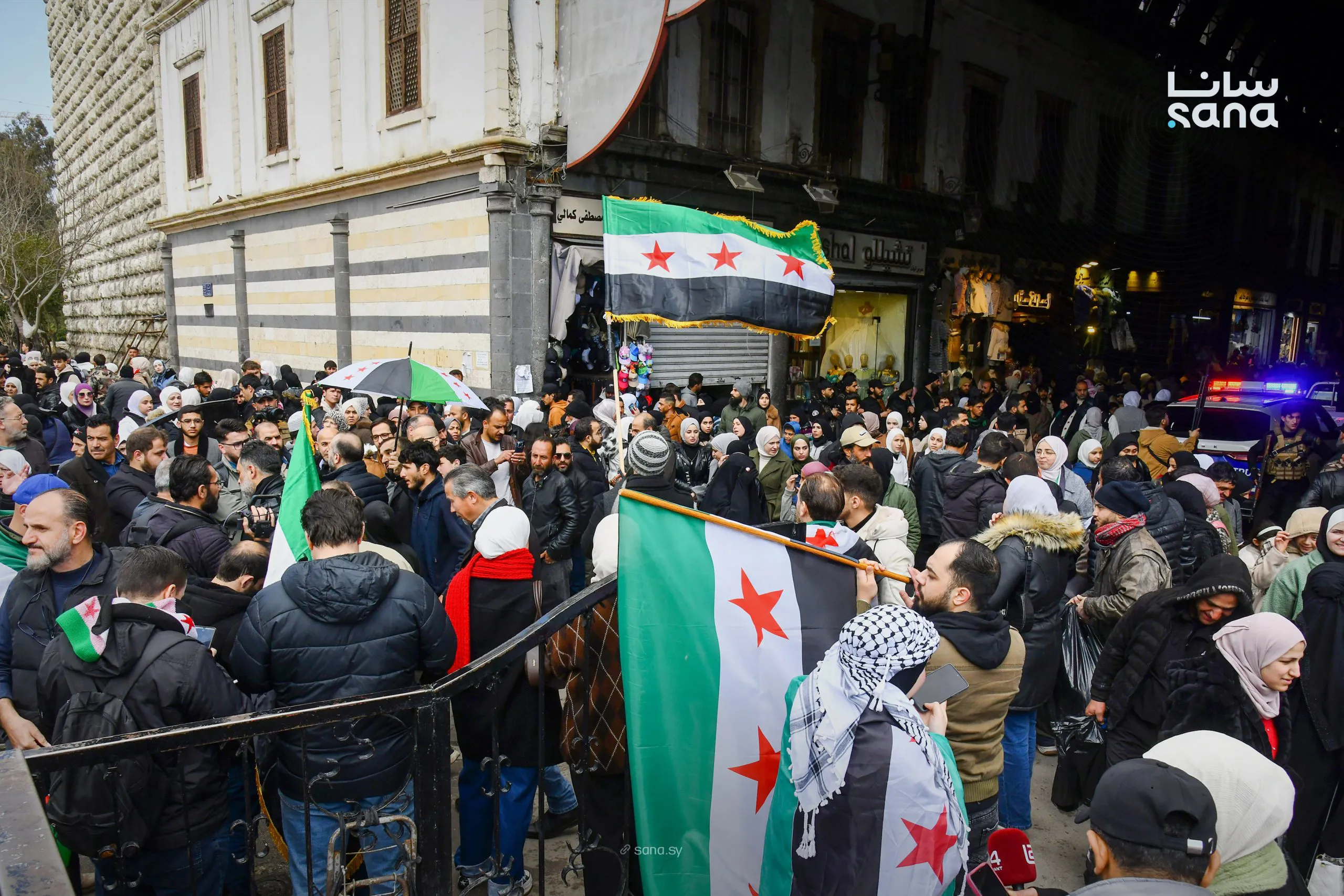 RûpelNews - وبدأت المسيرة من مدخل سوق الحميدية، حيث توجّه المشاركون إلى الساحة المجاورة للمسجد الأموي، مؤدين صلاة الغائب والدعاء لأرواح شهداء الثورة، وردد المشاركون هتافات أيام التظاهر الأولى ضد النظام البائد، وفي مقدمتها هتاف “الشعب يريد إسقاط النظام”، الذي تحقق مع إعلان التحرير في الثامن من كانون الأول 2024، بحسب وكالة الانباء الرسمية (سانا).