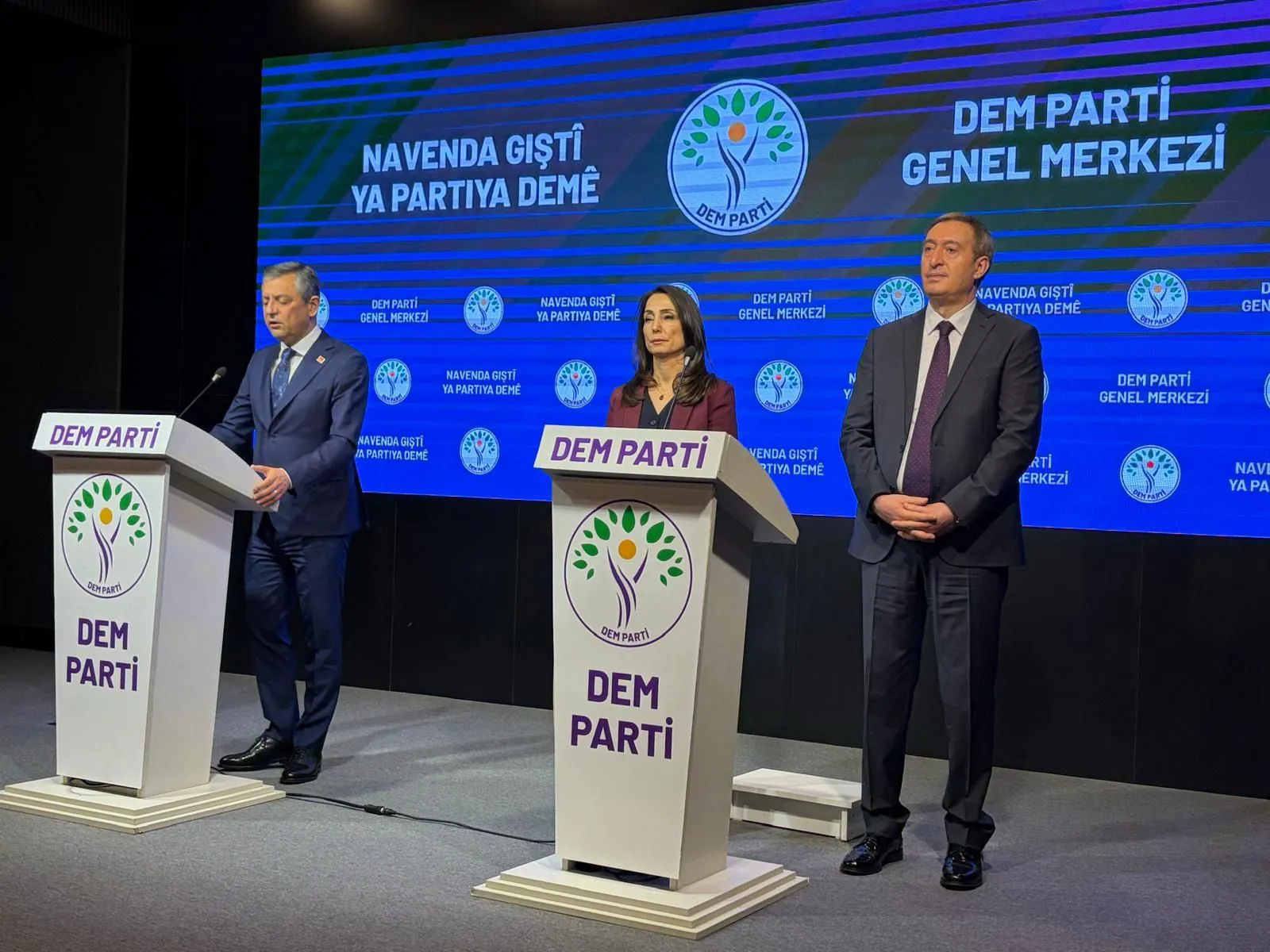 Serokê Giştî yê CHPê Ozgur Ozel serdana DEM Parti kir û der barê proseya aştiyê de got: “Divê gavên yasayî bên avêtin.” Hevseroka DEM Partiyê Tulay Hatîmogullari jî diyar kir divê yasa di çarçoveya herî berfireh de bibe.