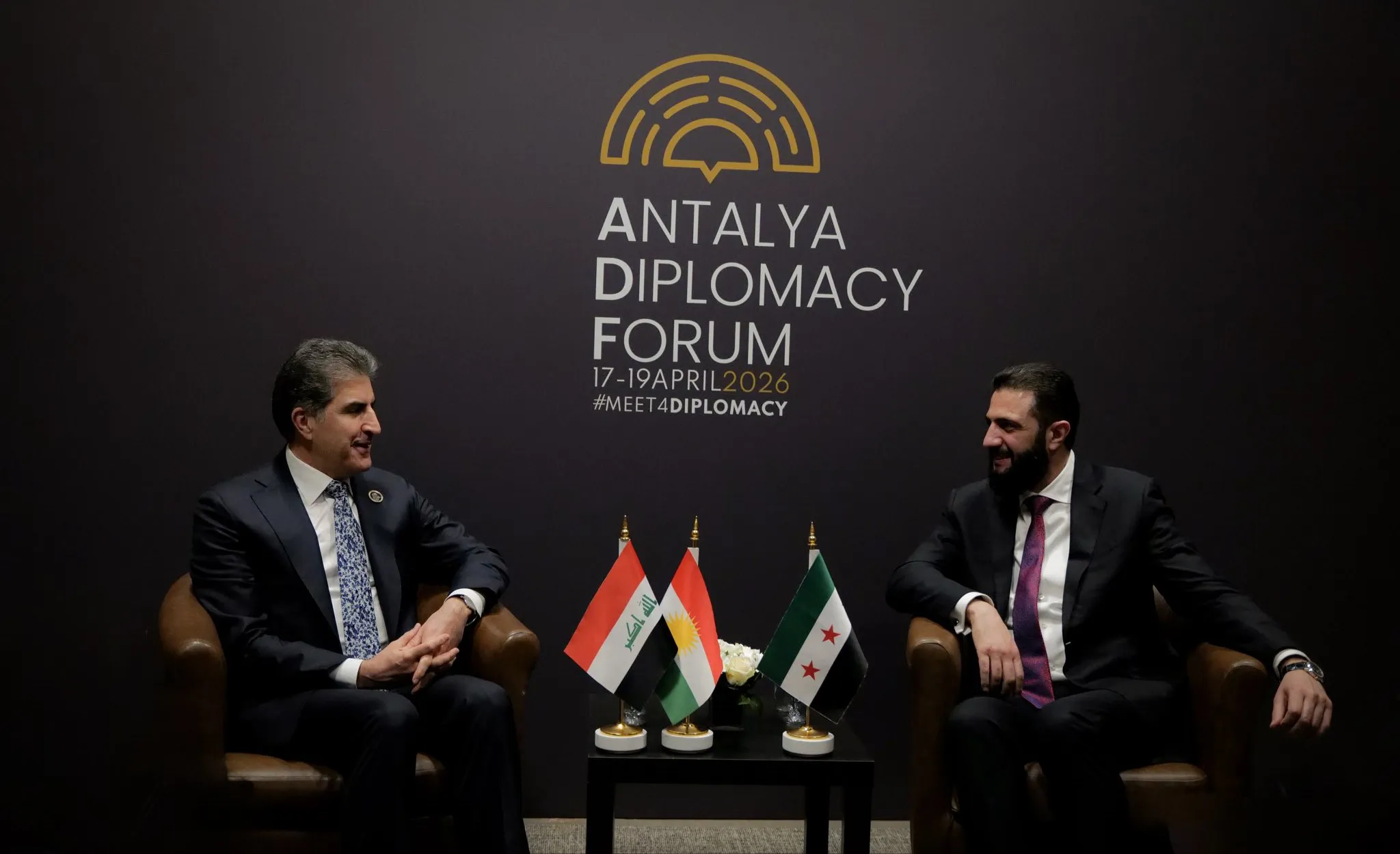 Serokê Herêma Kurdistanê Nêçîrvan Barzanî, di çarçoveya Foruma Dîplomasiyê ya Antalyayê de, bi Serokê Demkî yê Sûriyê Ehmed Şera re hevdîtin kir. Di civînê de geşedanên li herêmê hatin gotûbêjkirin.