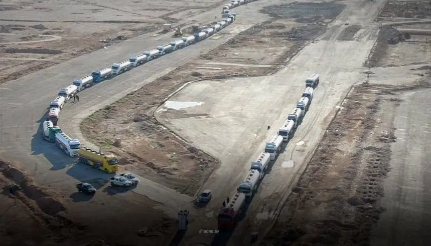 Şêx Ehmed di hevpeyvînekê de ji ajansa nûçeyan a fermî ya Sûriyê SANA re diyar kir ku karwanê yekem ê ji 176 tankeran pêk tê, bi rêya Deriyê Sînorî yê Tenêfê ketiye welêt û ber bi Banyasê ve diçe.
